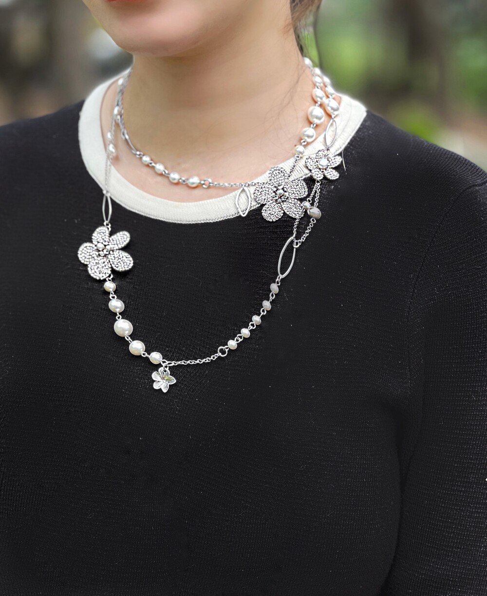 두줄로 착용했을때 큰꽃과 작은 꽃의 위치